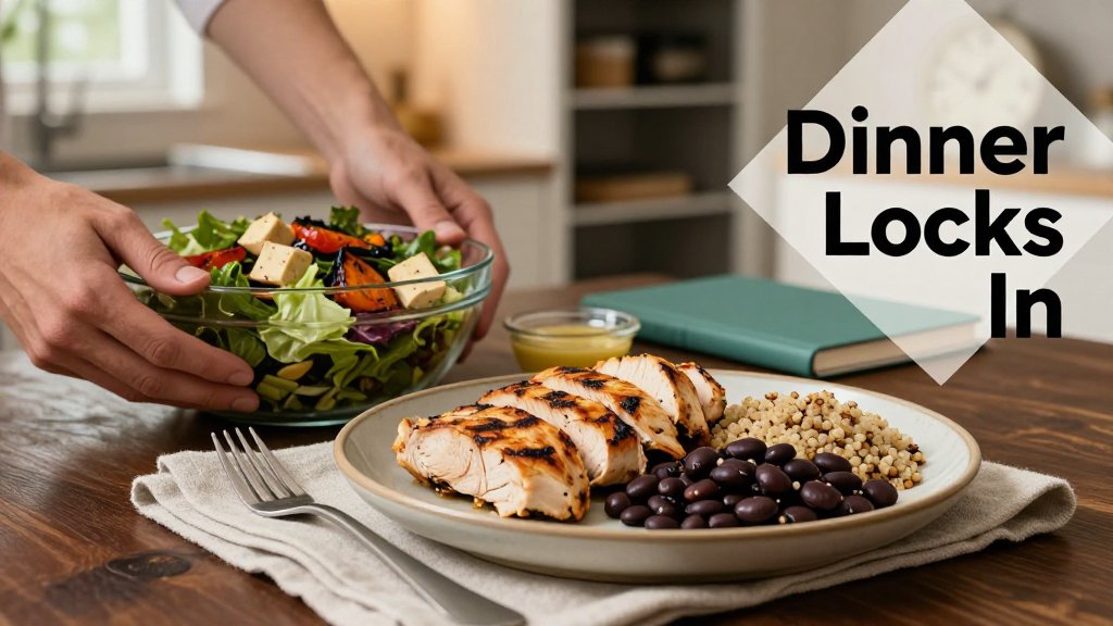 Dinners that fit this pattern include turkey chili with beans, salmon with broccoli and potatoes, or tofu stir-fry with edamame and brown rice. If you want a quick refresher on what counts as a high quality protein choice, the Harvard Nutrition Source has a helpful protein basics overview.